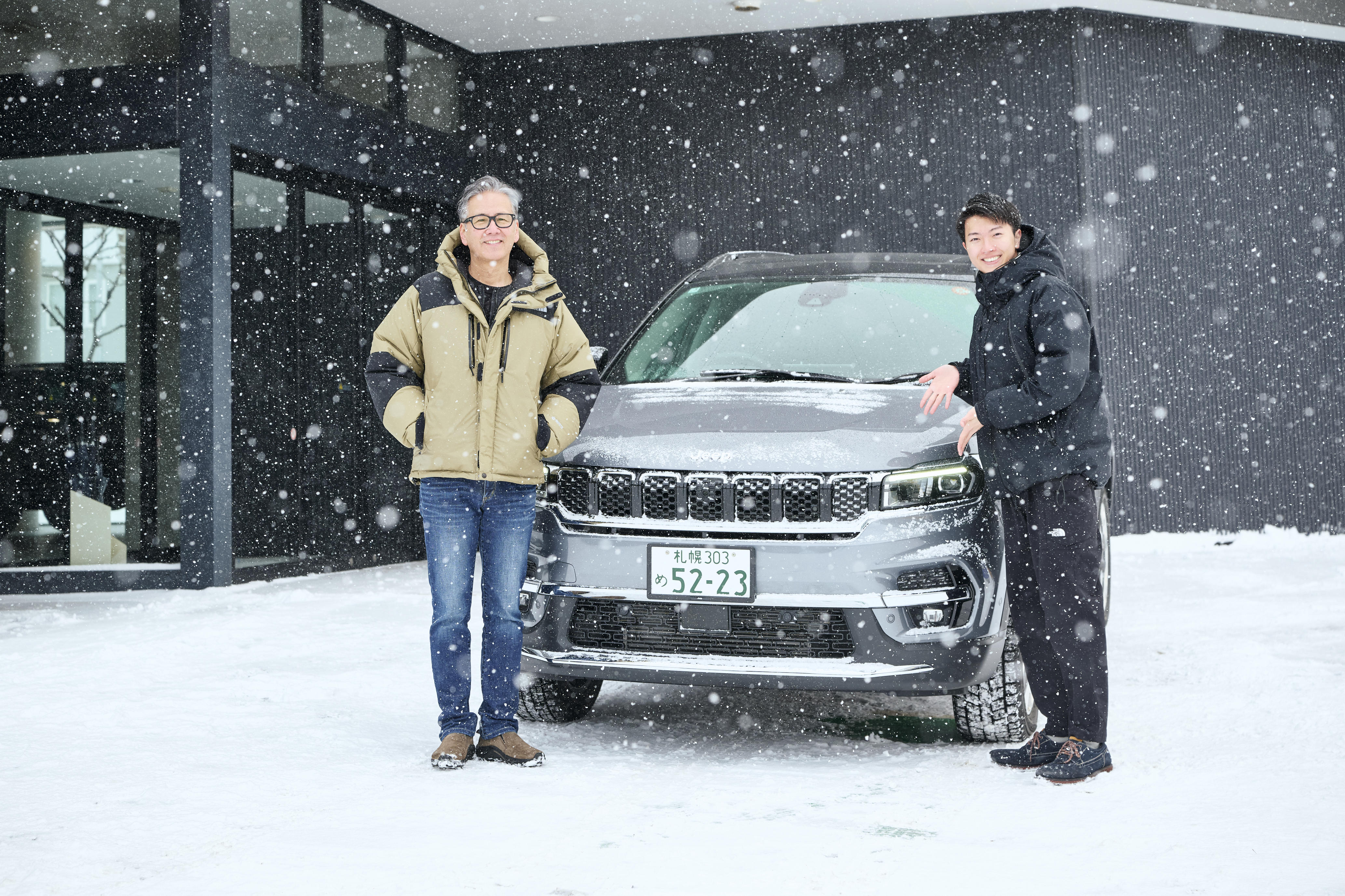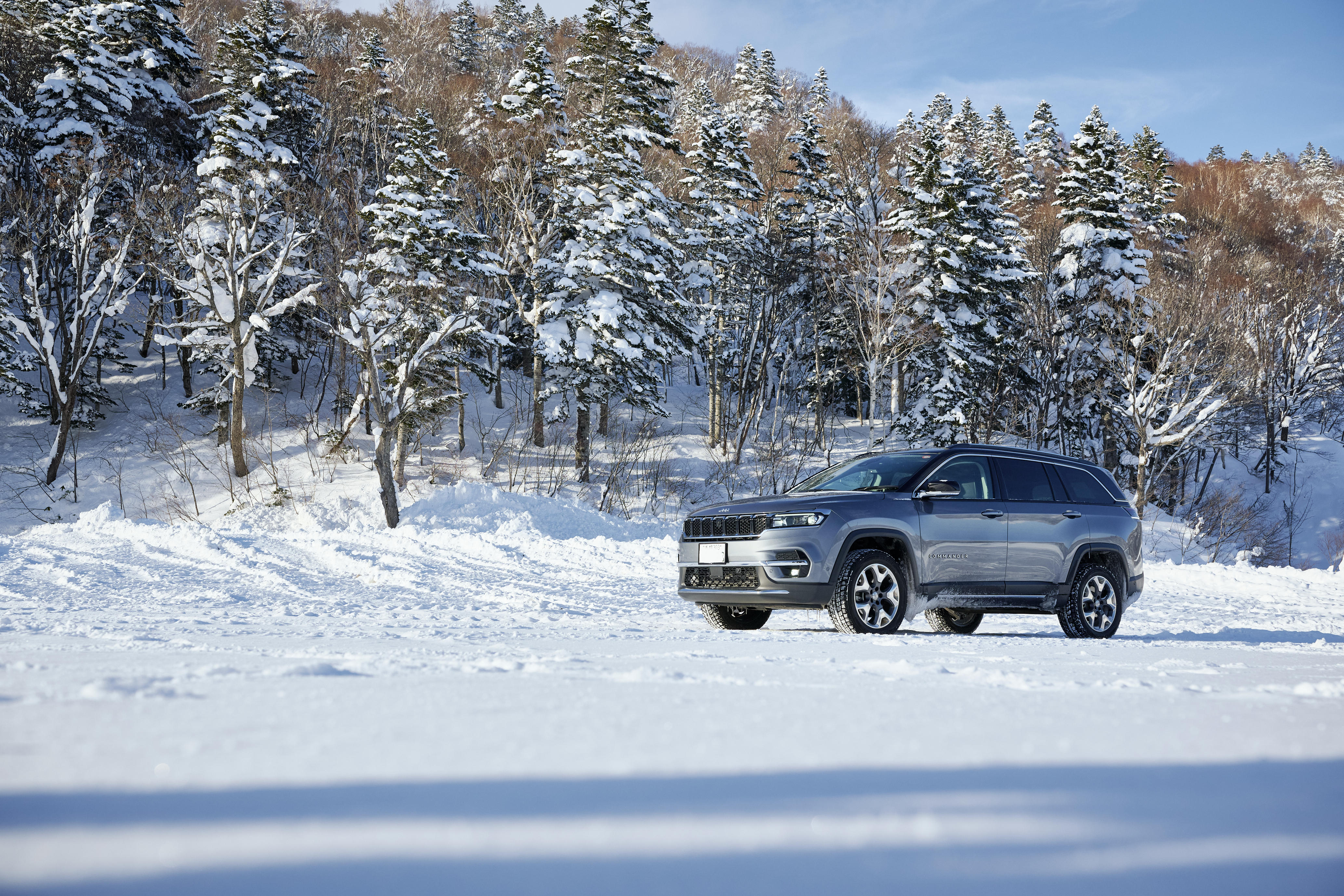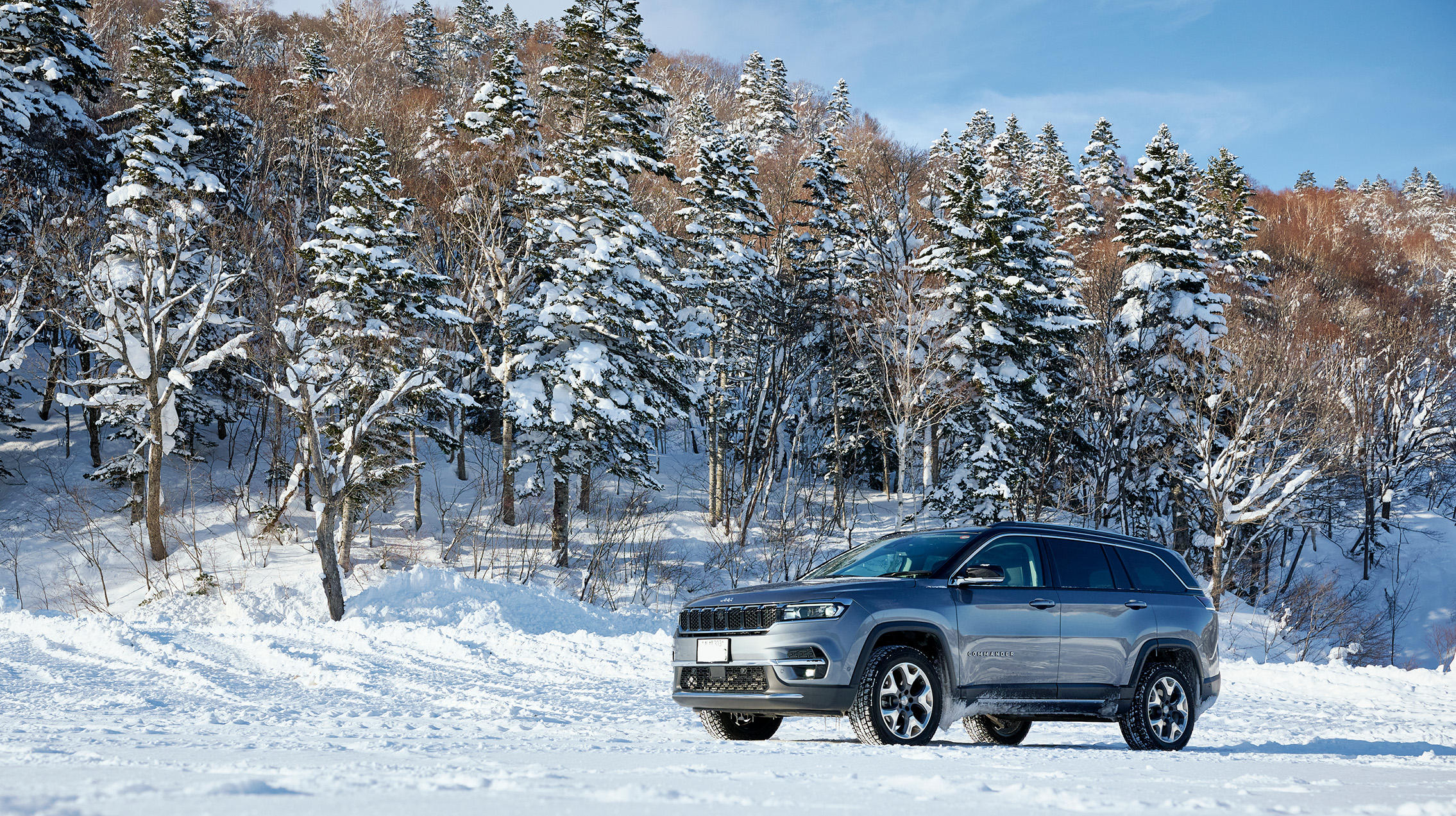 今回のスキーの相棒はジープ・コマンダー。ジープ伝統のタフな走破性を受け継ぎながら、7人乗車が可能なモデル。3列目のシートを倒せば、スキー板を車内に積み込んでも4名がゆったり乗車できる。SUVらしいヘビーデューティーなスタイルに加え、安心感のある4輪駆動パフォーマンスも魅力。リアバンパー下で足を動かすだけで開閉できるハンズフリー・パワーリフトゲートを搭載。スキーを持ったままでも使いやすく、まさに”スキーのための一台”。